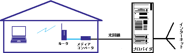 現在のパソコンはインターネット利用を前提としますので,LANアクセスポイント機能のあるブロードバンドルータやブリッジを使います。通常,市販されているLANアクセスポイント(親機)はこの形式になっています。一つの機器に対してLANネットワーク構築設定とインターネットを使うための接続設定をおこなうことになります。