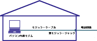 パソコンとモデムを接続し,モデムと電話線のモジュラージャックを通常の電話ケーブルでつなぎ,「ダイヤルアップIP接続」という方式を使います。Windows XP機にはモデムを標準装備している機種があります。この場合は電話のモジュラーケーブルを用意するだけで済みます。ご使用機種のマニュアル仕様書で確認してください。