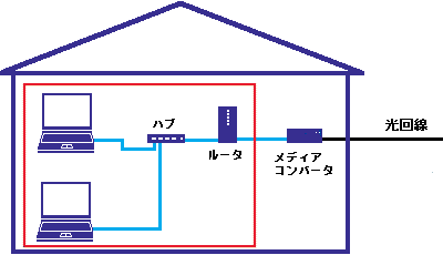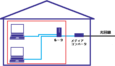 LANを経由でパソコンとプロバイダー間を接続する方式です。通常LANを構成するルーターに対してパソコンを使って接続設定をおこないます。