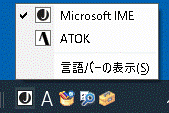 日本語入力ソフトの一時使用切り替えを行います。システムの標準使用設定は変更されません。下図は日本語入力システムとして「Microsoft-IME」と「ATOK」がインストールされている場合です。