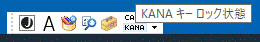 かなロックキーと同じ機能です。クリックすると[KANA]のバックの青が濃くなります。この状態がKANAロックです。再度クリックすると元に戻りKANAロックの解除になります。