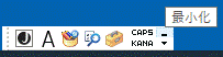 最小化ボタンをクリックするとMicrosoft-IME言語バーは画面下部のタスクバーの中に移動します。復元ボタンをクリックすると元に戻ります。